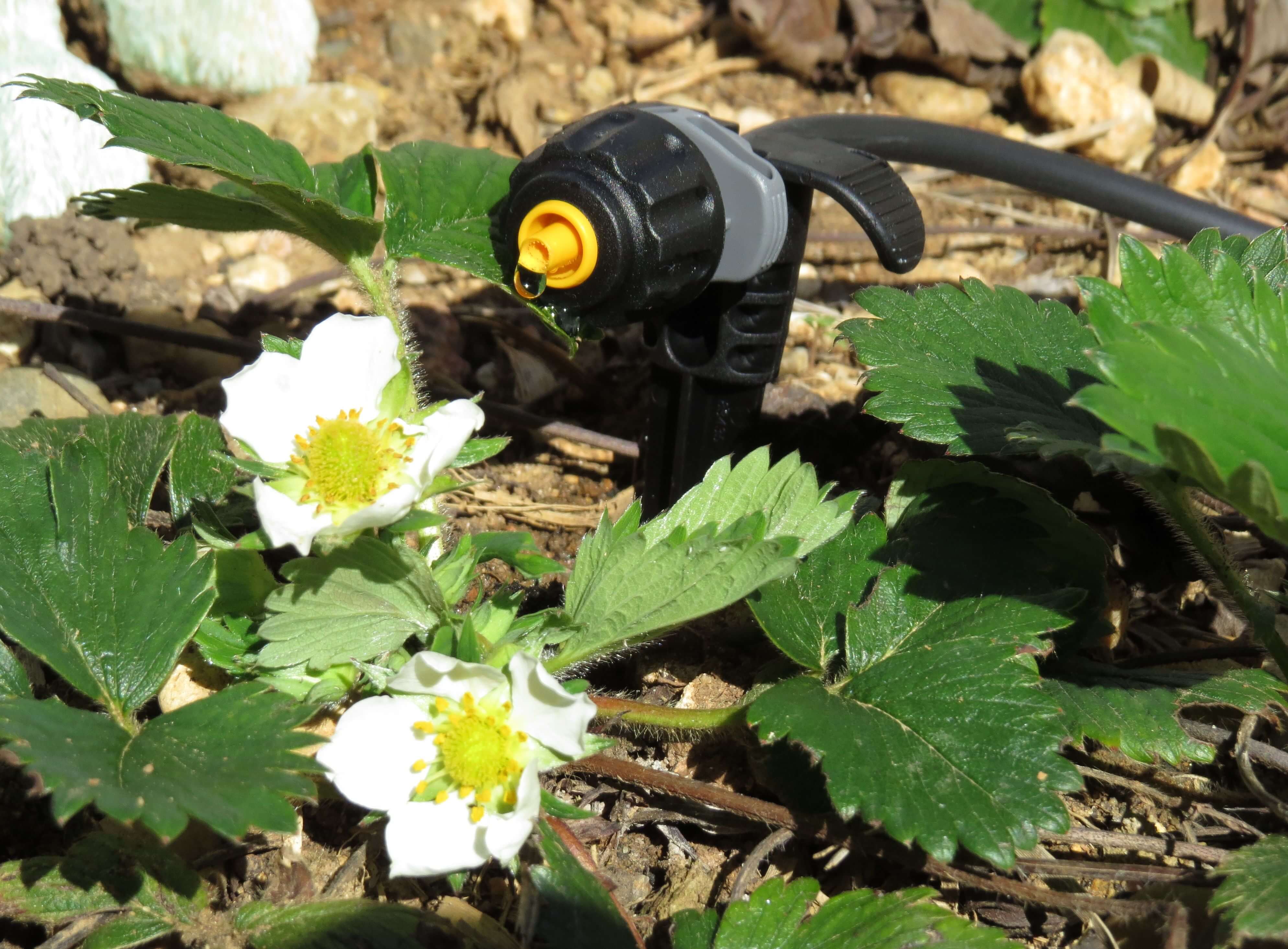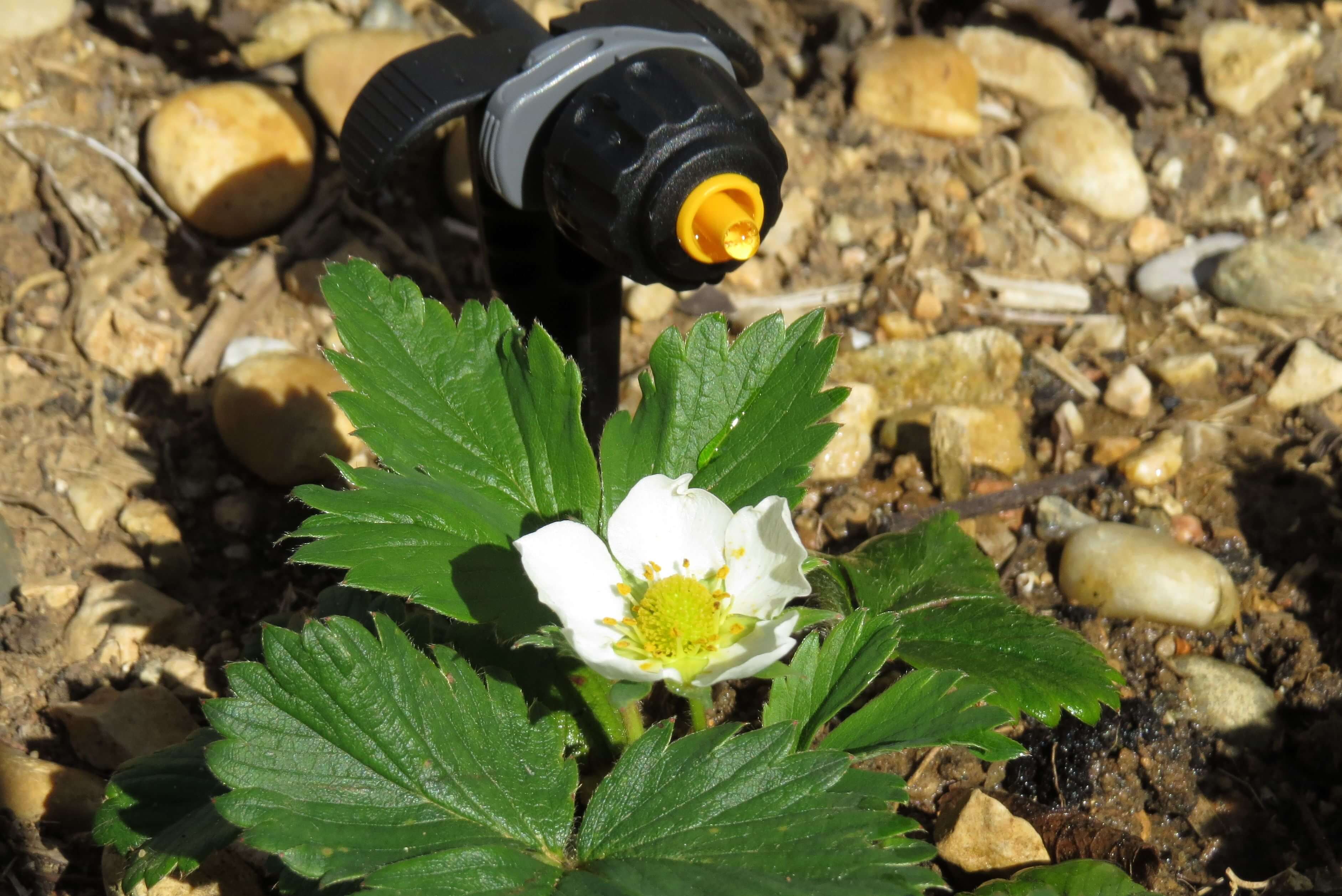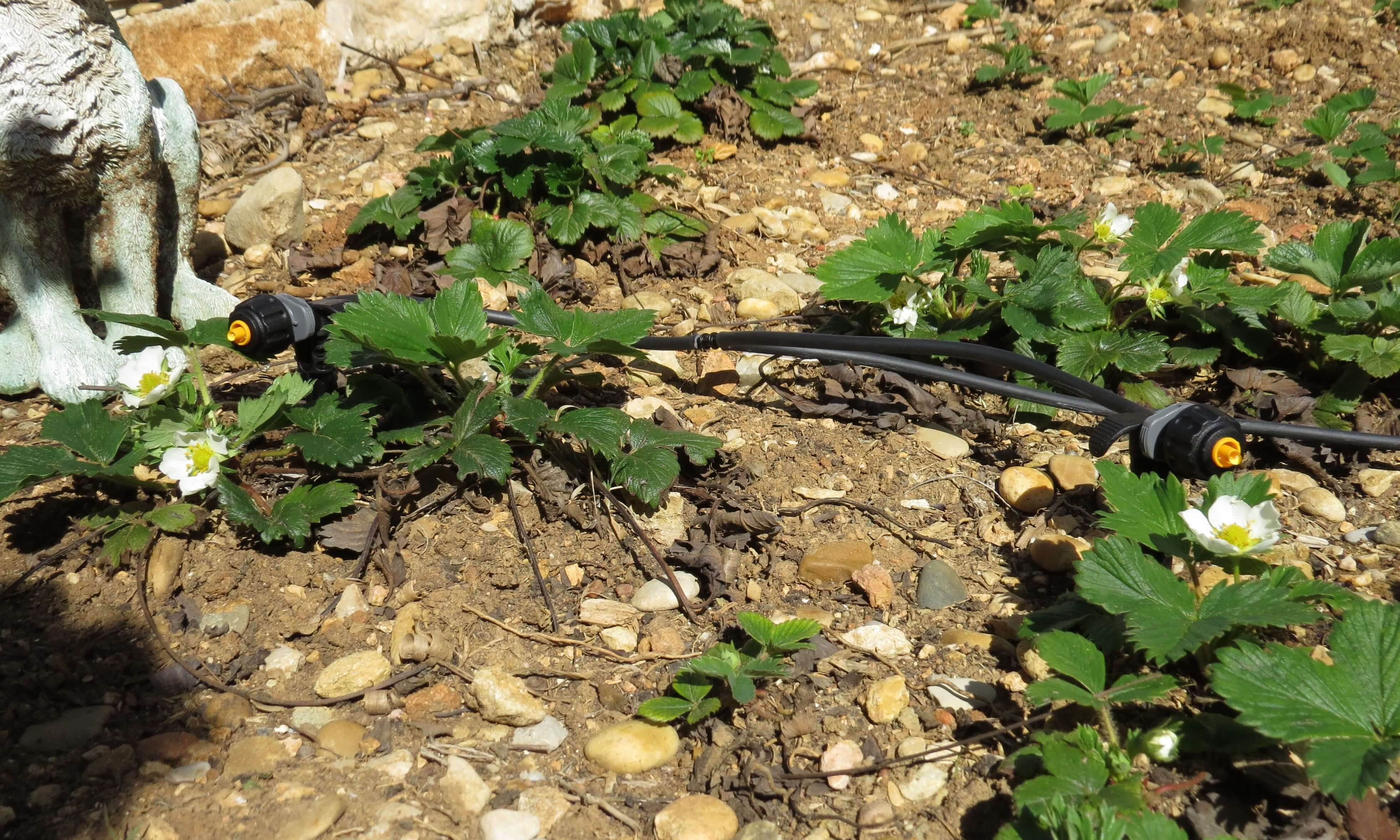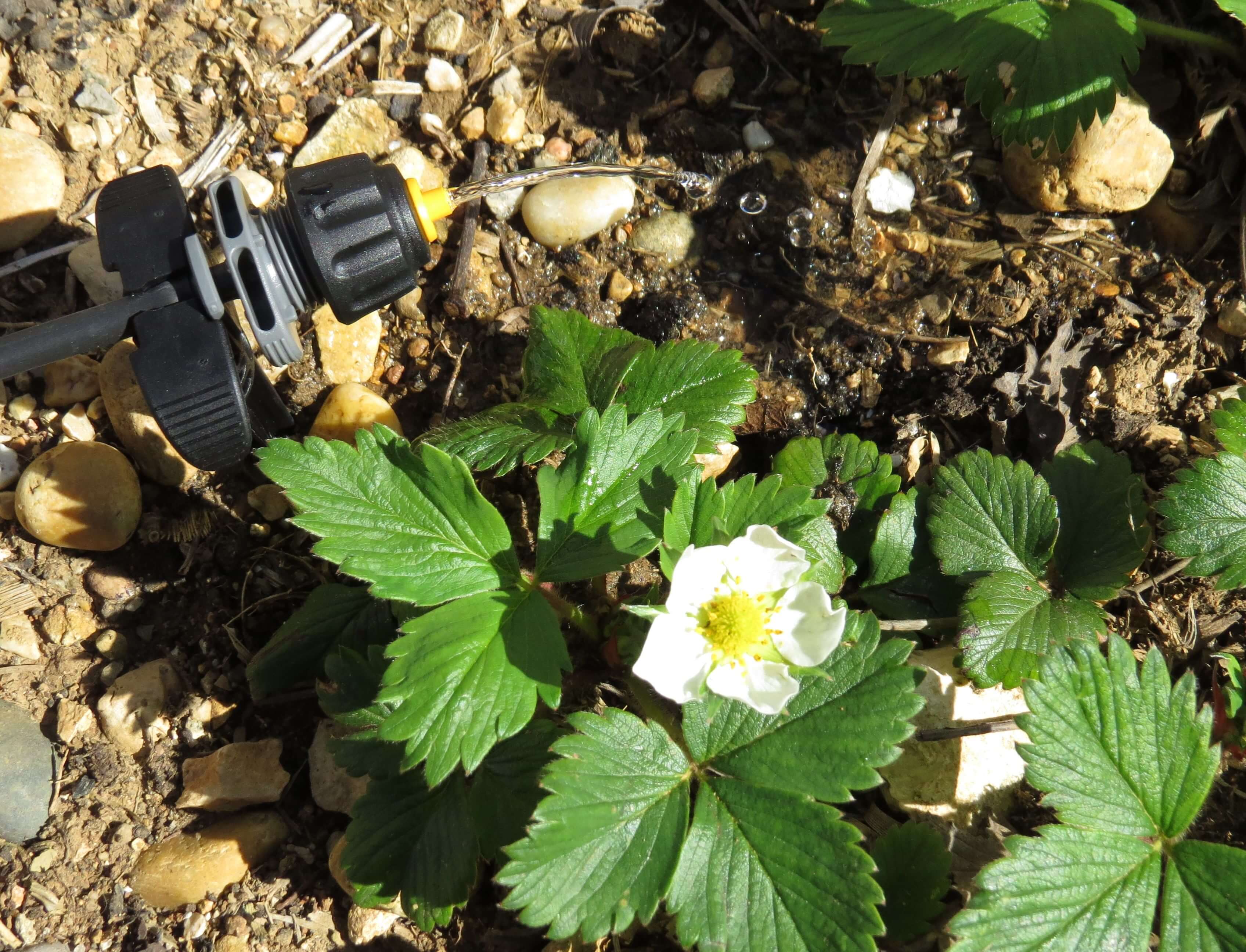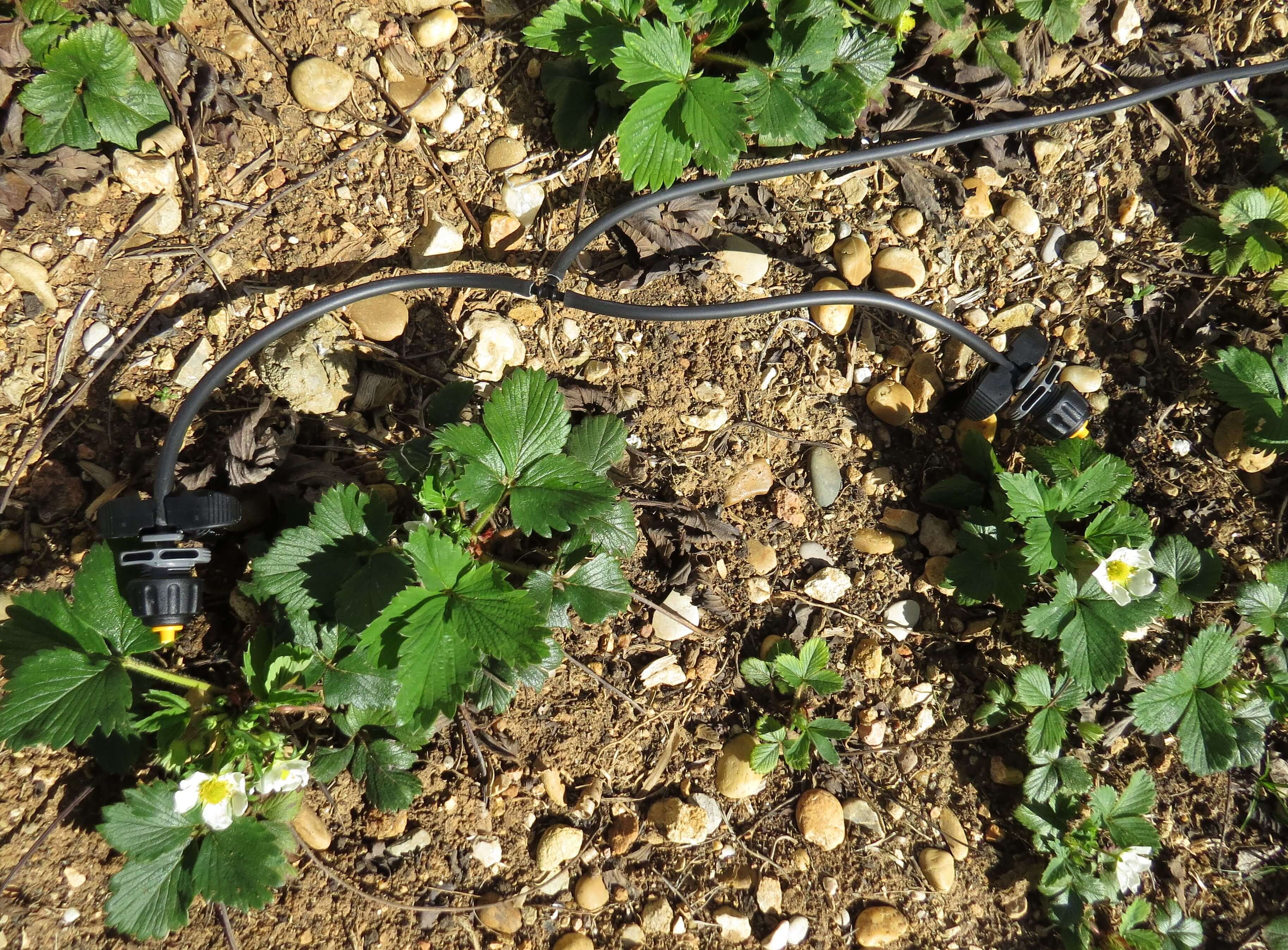 Présenté comme étant un véritable jeu d’enfant, la première condition, c’est-à-dire la simplicité d’installation, ne devrait pas présenter trop de souci, on va donc procéder au montage dans le but d’irriguer au goutte-à-goutte nos plants de fraises fraîchement fleuris.